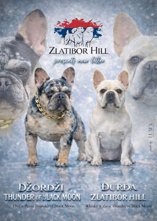 Na prodaju egzotični štenci Francuskog Buldoga iz odgajivačnice Zlatibor Hill. Oštenjeni 05.01.2026., više puta očišćeni od parazita, uskoro primaju drugu vakcinu i biće spremni za preuzimanje krajem februara. Otac Dzordzi Thunder of Black Moon (TNT & Persa Thunder of Black Moon) Majka Djurdja Zlatibor Hill (Whiskey & Zazu Thunder of Black Moon) 3 platinum ženke 2 platinum mužjaka, 1 merle mužjak