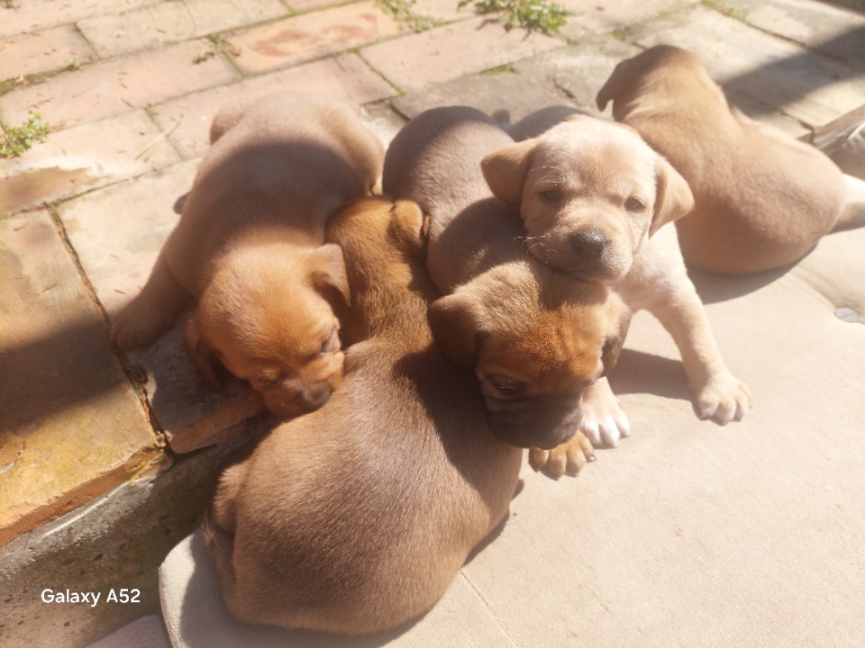 Za udomljavanje Stenad Labradora i Engleskog buldoga / Bullador Bulladori su mešavina pravog kratkodlakog Labradora i pravog, rasnog Engleskog buldoga.U Americi i UK su prepoznati kao rasa već punih 15 godina koliko mi to ovde znamo, a možda i duže. Imaju divnu, plemenitu narav.., vole decu i ljude generalno, a sve ostalo je kako ih mi sami vaspitamo. Narastu do 30 kg i imaju fantastičnu gradju. Vole vodu kao i svi labradori. Dva ženska kučeta su udomljena i sada je ostalo tri mužjaka. Oštenjeni 9. marta unutra u našoj kući, vrlo paženi i čuvani. Danas, 20. Aprila su napunili 6 nedelja i za dve nedelje će biti spremni za udomljavanje. Njihova mama vec dve nedelje nema dovoljno mleka, pa su na prehrani vrlo kvalitetnom, vlažnom hranom koja je bogata oligoelementima i hranljivim sastojcima. Dobijaju dve kesice od po 100 gr dnevno sto je 250 din po kučetu, sto znaci da na dnevnom nivou potrosimo 1250 din, a ostalih tri obroka sisaju koliko njihova mama ima. U ovom periodu do 8 nedelja, tj do dva meseca starosti, kučići moraju imati 5 do 6 obroka dnevno. Ovo nije mali iznost kada shvatite da vec punih 15 dana trosimo 1250 din na dan, za njih pet komada malih medenjaka ... Takodje svih pet su dobili dozu sirupa kako bi se očistili od tzv glista.., a u sredu dobijaju prvu vakcinu od ukupno tri. U to ime, mi cemo samo naplatiti mali deo troskova koje smo potrosili na njih...., ne brinite neće biti ni približno koliko smo mi u njih uložili. I hvala na razumevanju ...